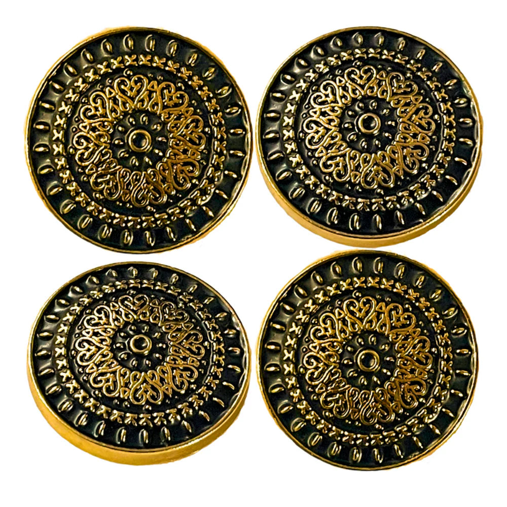 Yellow And Black Ligne Circular Metal Buttons 32L